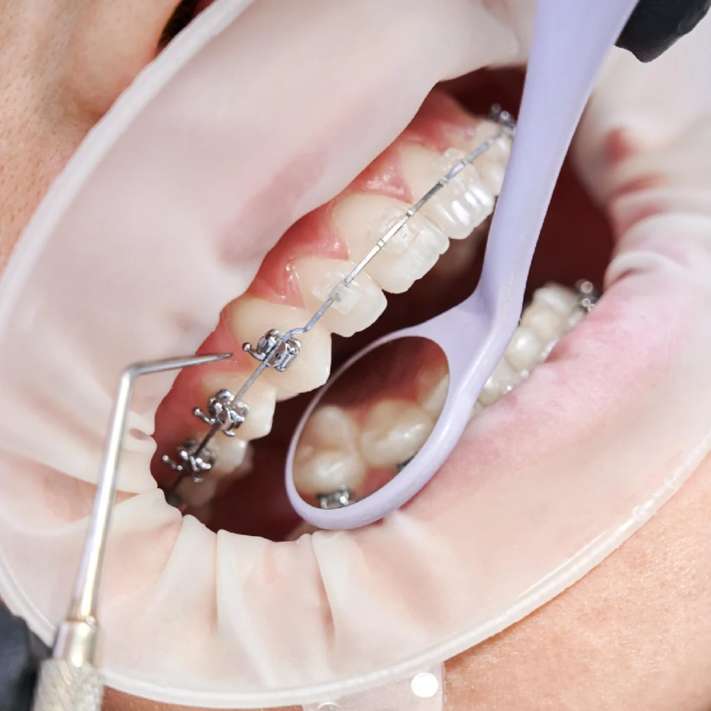 Orthodontic treatments to straighten misaligned teeth using braces or clear aligners.